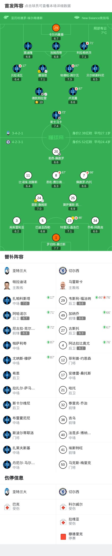 第17分钟,被动调整,贝拉诺瓦伤退,扎帕科斯塔替补上场
